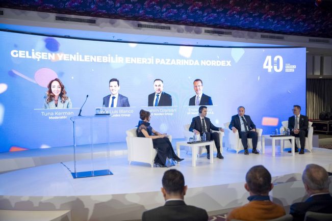 Kutlama etkinliğimizde Nordex yöneticileri, her biri alanında yetkin konuklarımız, yenilenebilir enerji sektörünün hem bugününü değerlendirdiler, hem de bizlerle sektörün geleceğine yönelik ufuk açıcı görüşlerini paylaştılar. İlk oturumda Nordex Türkiye Kıdemli Satış Müdürü Tuna Kerman'ın moderatörlüğünde; Nordex Group CEO’su Jose Luis Blanco, Nordex Group CCO’su Ibrahim Oezarslan ve Türkiye-Orta Doğu Bölge Başkan Yardımcısı ve Genel Müdürümüz Ender Özatay, “Gelişen Yenilenebilir Enerji Pazarında Nordex” başlığı altında konuştular.