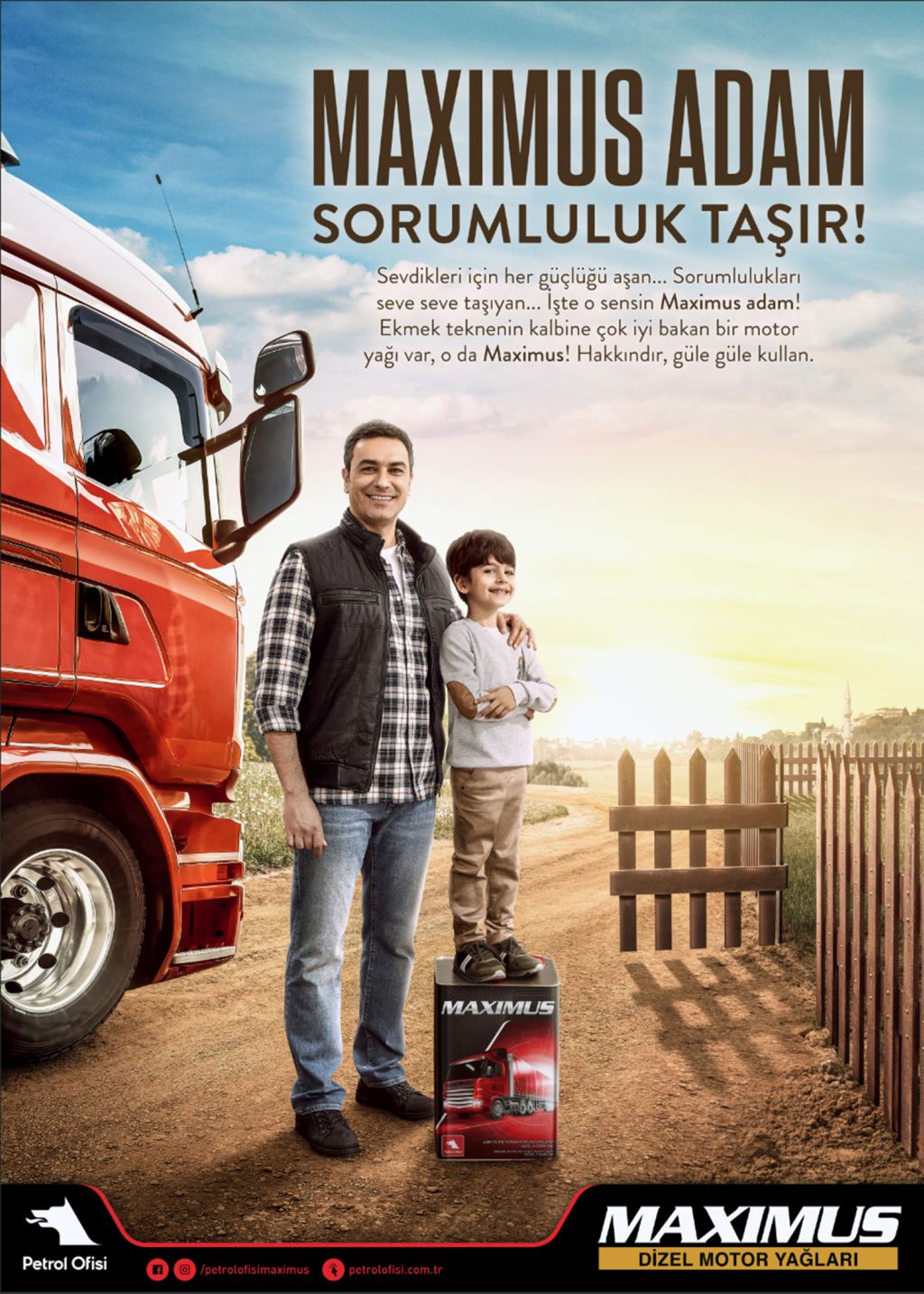 Petrol Ofisi olarak ağır vasıta şoförlerini ve ustalarını ‘Maximus Adam’ olarak tanımlıyoruz. Onlar Maximus Adam, zira güç, güven ve performans isteyen zorluğu çok yüksek bir iş yapıyorlar. Zor koşullarda çalışıyorlar. Onlarla dostluğumuz çok eski, ‘Maximus Adam’ı tanıyoruz, yakından takip ediyoruz. Yaşadıkları zorlukları biliyoruz, anlıyoruz ve onlara destek oluyoruz. İşte bu yaklaşımla Petrol Ofisi’nde Maximus ürün ailemizi, onların gücüne güç katmak için geliştirdik. Sektör standartlarına göre %50 daha az eksiltme sağlayan yeni formülüyle Maximus motor yağları, müşteri ve ustalarla ‘Maximus Adam’ ile buluşuyor.