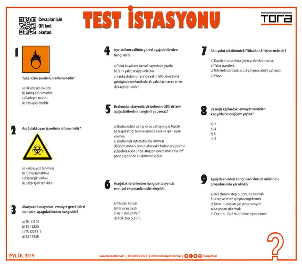 Tora Petrol tarafından hazırlanıp, Haber Ekonomi Gazetesi’nde yayınlanmaya devam eden “TEST İSTASYONU”nun 20.si Eylül sayısında yayınlandı. 9 sorudan oluşan TEST İSTASYONU’nun cevap anahtarı Tora Petrol’ün web sitesinde.