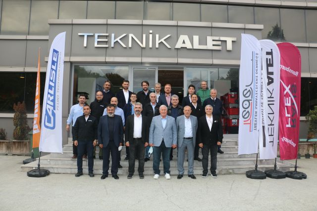Treyler Sanayicileri Derneği, ürünler ve yapılan çalışmalar hakkında detaylı bilgiler almak için Teknik Alet’i ziyaret etti. Teknik Alet’in distribütörlüğünü yaptığı markalar arasında yer alan ABD merkezli Carlisle Companies Incorporated iştiraki olan Carlisle Fluid Technologies; boya, toz, sızdırmazlık elemanı, yapıştırıcı ve köpük gibi çok çeşitli uygulama malzemelerinin tedariki, kontrolü, tatbiki ve kürlenmesi için müşterilere sektör lideri çözümler sunuyor. Carlisle’nin yıllık 4,5 milyar dolarlık ciroya ulaştığı bilgisini veren Teknik Alet Türkiye, Güney Afrika ve Ortadoğu Satış Müdürü Emrah Özdemir, amacımız tüm yaş boya, toz boya, sızdımazlık ve yapıştırma uygulamalarında müşteri ihtiyaçlarına tek adreste cevap verebilmek ” şeklinde konuştu.