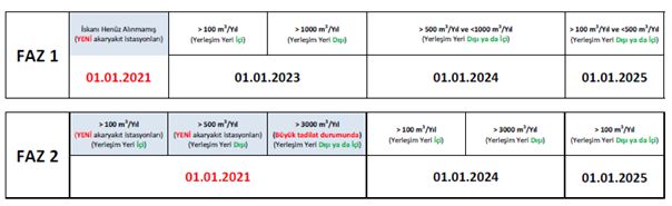 Haberler > Ekipman Başlıkları TORA, Buhar Geri Kazanım sistem kurulumlarında neler yapıyor?![]() Yönetmelik içeriğinde belirtildiği üzere mevcut akaryakıt istasyonlarında tablodaki takvim kapsamında Faz 1 ve Faz 2 Buhar Geri Kazanım uygulamaları yapılmalıdır. Bu kapsamda TORA 2021 yılı başından itibaren çalışmalarını hızlandırıp 120 istasyonda uygulamaları hayata geçirdi.![]() TORA Altyapı Tesisat Proje Müdürü Barış Şirin; ‘’Mevcut çalışan akaryakıt istasyonlarında sistemin uygun hale getirilmesi için saha keşfi çalışmaları ve mevcut datalarından kontroller yapılarak ekipman tedarikleri yapılmaktadır. Bu aşamada takvim yaklaştıkça birçok istasyon talebinin yerine getirilmesi ekipman ve ekip organizasyonunda sorunlar yaşanmaması için sektör paydaşlarının daha organize olması gerekmekte.’’ Şeklinde ifade etti. Sürecin gerisinde konuyu bizlere aşağıdaki sıralama ile anlattı:Ana dağıtımların acente istasyonlarında daha yoğun şekilde bu çalışmalar devam etmekte. Mevcut bayi istasyonlarındaki çalışmalarda bölge servis ağımız ve satış departmanı vasıtası ile ulaşılmaktadır.Faz 1 uygulaması yapılacak mevcut istasyonlar birkaç kategoride değerlendirmek gerekirse;1-Merkezi dolum noktası ile nefesliklerin 1 mt mesafede ve nefesliğin dolum tankerin yanaşma yönünde olduğu istasyonlar,2-Merkezi dolum noktası ile nefesliklerin 1 mt mesafede ve nefesliğin dolum tankerin yanaşma yönüne ters olduğu istasyonlar,3-Merkezi dolum ve nefeslik noktalarının uzak olduğu istasyonlar,İlk 2 kategorideki istasyonlar yapılan çalışmalarda inşaat işlerine gerek kalmadan tamamlanabilmektedir.3. kategorideki istasyonlarda benzin nefesliğine takılacak buhar geri dönüş adaptörü merkezi dolum noktasına yakın noktaya taşınması işlemleri yapılmaktadır. Benzin tanklarının nefeslikleri yer üstünde Buhar Geri dönüş TE’leri ile birleştirilerek, yer altından merkezi dolum noktasına kanal açılarak bir hat vasıtası ile taşınmaktadır. Merkezi dolum noktasında taşma kovası içinde adaptör montajı yapılır.Çok ekstrem durumlarda benzin tankı menholü merkezi doluma yakınsa tanker buhar adaptörü bağlantısı menhol içinde de yapılabilmektedir.Mevcut akaryakıt istasyonlarında alternatifli çözümler üreterek FAZ 1 bağlantılarını yapılabilmektedir. Bu çalışmalar kapsamında tank nefeslik hatlarının belirlenmesinde gerekli SEÇ ve emniyet tedbirleri alır. Yüksekte çalışma olduğu için onaylı sepetli vinçlerle çalışılır. Nefeslik hatlarını yanlış belirlenmesi için bütün tanklarda nitrojen uygulanması yapılmaktadır. Benzin tank nefesliklerinde FAZ 1 uygulaması yapılarak gerekli etiketlemeler gerçekleştirilir.Bu çalışmalar kapsamında tanker buhar hortum tedarikleri ve sevkiyatları yapılmaktadır.FAZ 2 çalışmaları kapsamında mevcut istasyonlarda düşük oktanlı benzin tank menholünden pompa adalarına ve %1-2 eğimle 2 “ boru hatları çekilmektedir. Boru hattı EN 14125 sertifikaya sahip UPP boru kullanılmakta. Tank menholünde uygun manşon bağlantısı yoksa kendinden emniyetli şekilde delik delme işlemleri yapılır. FAZ 2uygulama kapsamında en çok karşımıza çıkan durumlardan bir tanesi de menholde uygun bağlantılar olmamasıdır. Bu sebeplerden dolayı saha keşifleri önem arz etmekte.Bu çalışmalar kapsamında istasyonlarda bütün adalara FAZ 2 hattı çekileceği için belli bir süre satışa kapatılması gerekir. Altyapı inşaat işleri yapılır ve bu çalışmalarda yaşanan tecrübelerde çekilecek FAZ 2 hattı akaryakıt hatlarının güzergahından bağımsız bir hat üzerinden çekilir. Bu tadilat kapsamında pompa altı buhar shut off montajları da gerçekleştirilir. Ayrıca dispenser vakum pompası için data ve elektrik hatları çekilmelidir.FAZ 1 ve FAZ 2 altyapı çalışmalarının takvim yaklaştıkça sektörün duyarlılığını artırmak için çalışmalarımıza devam etmekteyiz. Sıfır veya büyük tadilatla çalışmalarımızda mutlaka altyapı çalışmalarının tamamlanması için bilgilendirme ve imalatlarımız devam etmektedir.TORA Buhar Geri Kazanım sistem kurumlarına tam hızıyla devam ediyorYönetmelik içeriğinde belirtildiği üzere, mevcut akaryakıt istasyonlarında tablodaki takvim kapsamında Faz 1 ve Faz 2 Buhar Geri Kazanım uygulamaları yapılmalıdır. Bu kapsamda 2021 yılı başından itibaren çalışmalarımızı hızlandırdık ve 120 istasyonda uygulamalar hayata geçirilmiştir. |