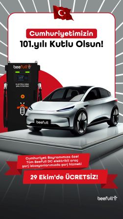 Kampanya kapsamında, 29 Ekim günü boyunca tüm Beefull DC elektrikli araç şarj istasyonlarında kullanıcılar ücretsiz şarj yapabilecek.