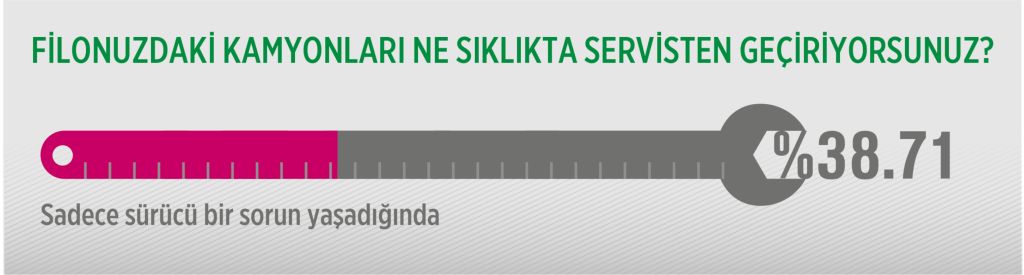 Araştırmaya katılan filoların yüzde 23 gibi yüksek sayılabilecek bir oranı, filo araçlarını haftada bir ya da daha sık olarak frenler ve tekerlek ayarı gibi konularda servisten geçirdiğini belirtti. Katılımcıların yüzde 35'i araçları altı haftada bir servisten geçirirken, endişe yaratacak bir şekilde, yüzde 39’u sadece sürücü bir sorun yaşarsa bu çalışmayı yaptığını söyledi.