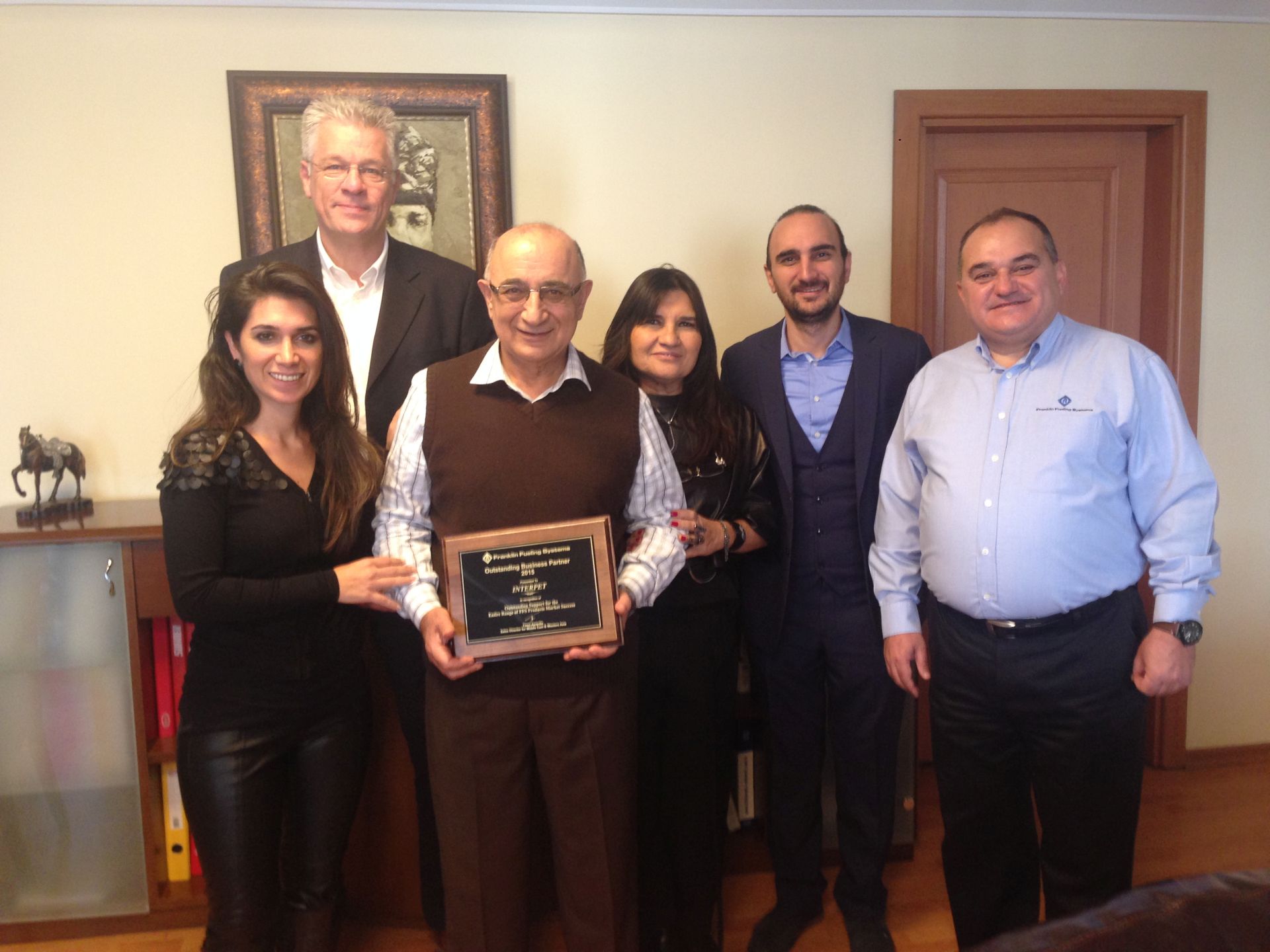 İnterpet, Franklin Fueling Systems’ten “2015 yılı Çok Özel İş Ortağı” ödülünü aldı. Ödülü, tüm Interpet yönetimi ve Franklin Fraklin Fueling Systems Orta Doğu ve Batı Asya Satış Direktörü Fevzi Apaydın da bulunduğu toplantıda, Interpet Genel Müdürü Bekir Aluç'a Franklin EMEA Bölgesi Satıştan Sorumlu Başkan Yardımcısı Peter van der Gaag takdim etti.