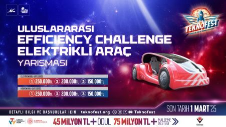 Haberler > Otomotiv-Lastik Başlıkları Çevreye Duyarlı Elektrikli Araçlar TEKNOFEST’te Yarışıyor Güncelleme :25.02.2025Efficiency Challenge Elektrikli Araç Yarışları için başvurular 1 Mart tarihine kadar devam ediyorAlternatif ve temiz enerji kaynaklarının otomotiv sanayiinde kullanımını yaygınlaştırmayı amaçlayan TEKNOFEST’in en dikkat çeken yarışmaları arasında yer alan Efficiency Challenge Elektrikli Araç Yarışması 2025 yılında da büyük ilgi görmeye devam ediyor. TEKNOFEST Havacılık, Uzay ve Teknoloji Festivali kapsamında, TÜBİTAK tarafından düzenlenen Uluslararası Efficiency Challenge Elektrikli Araç Yarışları ile yine TÜBİTAK tarafından düzenlenen Liseler Arası Efficiency Challenge Elektrikli Araç Yarışları tasarımından teknik donanımına kadar gençler tarafından hazırlanan elektrikli araçların mücadelesine sahne olacak.Elektrikli Araçlar Enerjisini Gençlerden AlıyorElektrik ve hidrojen enerjisiyle çalışan araçlarla ilgili yerli üretimin artırılması, katma değeri yüksek ürünlerin geliştirilmesi, geleceğin teknolojileri olan batarya beslemeli araçlar konusunda ülkemizde ve dünyada yoğun Ar-Ge çalışmaları yürütülürken, elektrikli araçların günlük yaşamımızdaki kullanımı daha da yaygınlaşıyor. Tasarımından teknik donanımına kadar en verimli araçların ortaya çıkmasının amaçlandığı Uluslararası Efficiency Challenge Elektrikli Araç Yarışları, Elektromobil (Batarya Elektrikli) ve Hidromobil (Hidrojen Enerjili) olmak üzere iki kategoride düzenleniyor. Ülkemizde ve yurt dışında öğrenim gören tüm üniversite öğrencileri yarışmaya katılabiliyor.Yarışma sonucunda iki kategoride dereceye giren gençlerden; birincilere 250 bin TL, ikincilere 200 bin TL, üçüncülere ise 150 bin TL ödül takdim edilecek.Liseler Arası Efficiency Challenge Elektrikli Araç Yarışları