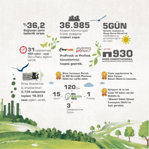 Çevresel etkilerini azaltmak için belirlediği hedefler doğrultusunda çalışan Brisa, 2013 yılında Çevre Koruma ve Yatırımı için 1 milyon 198 bin dolar tutarında harcama gerçekleştirdi. Yürüttüğü iyileştirme çalışmalarıyla 2005 yılına göre üretimden kaynaklanan karbon emisyonunu %20 azalttı. Enerji tüketiminde verimlilik sağlamak için yürütülen sistematik iyileştirme çalışmaları sayesinde 2008’den bu yana enerji tasarrufunda 11 kat artış sağlandı. Üretimde ton başına kuyu suyu tüketimi ise 2008'e göre %51 oranında azaltıldı. 2010'a göre tehlikeli atık %21 oranında azaltıldı. Biyoçeşitlilik alanında, WWF-Türkiye ile işbirliği içerisinde hayata geçirilen “Turnalar Hep Uçsun” projesi kapsamında Çukurova’daki kışlama alanlarında yürütülen saha çalışmalarında, turnaların popülasyonunu ve güncel durumları hakkında önemli bilgiler edinildi. Brisa ve WWF-Türkiye, önümüzdeki dönemde de turnaların yaşamlarını tehdit eden faktörleri araştırmayı, bu alanda farkındalık yaratmayı ve Anadolu’daki turna neslini korumayı amaçlıyor.